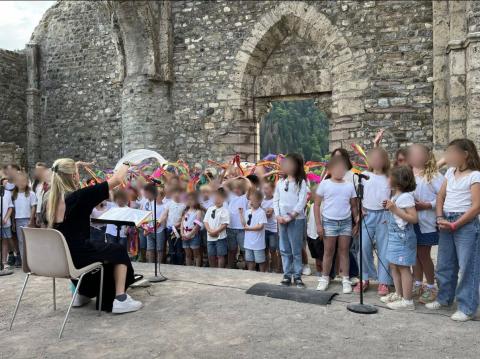 Le projet s’est conclu en soirée par un grand spectacle à l’abbaye d’Aulps, lieu emblématique de la vallée. Devant les familles et de nombreux spectateurs, les voix des élèves ont résonné sous les voûtes, offrant un moment musical fort et émouvant pour tous. Cette représentation a été l’aboutissement du travail de toute une année et a mis en valeur l’engagement des enfants, des enseignants et d’Hilary.